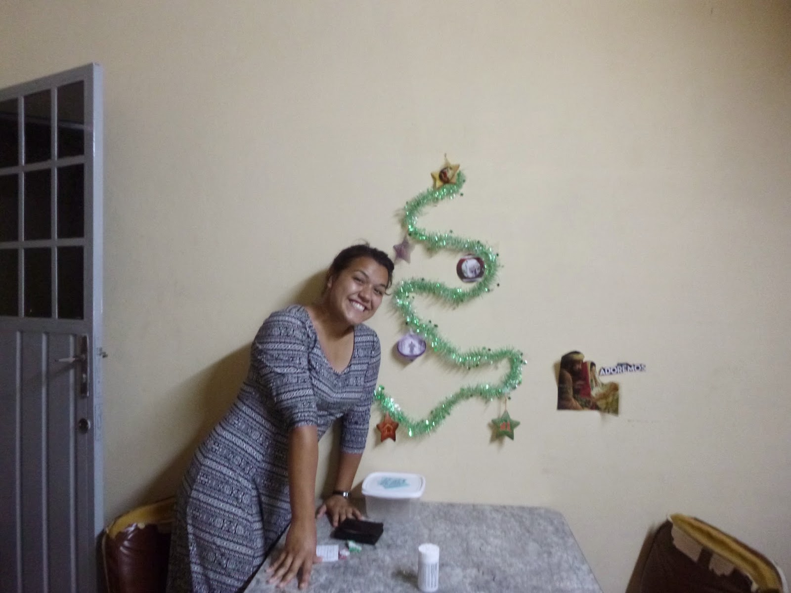| Christmas is up at our house. I also convinced Hermana Escobar to buy Christmas lights. They were like $2 so we have them in our room. |
